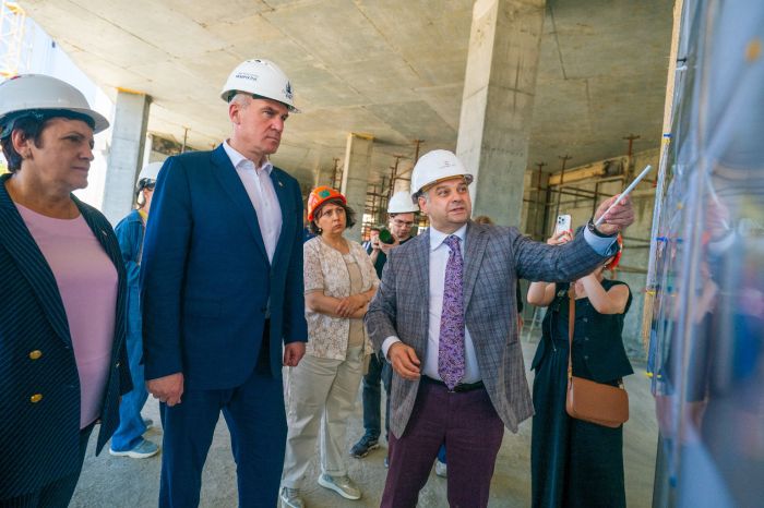 Руслан Кухарук подчеркнул, что генеральный подрядчик «Стройинвестгрупп» реализует уже третий объект здравоохранения, показывая высокий уровень выполнения работ. В строительстве поликлиники задействовано 90 человек, общая готовность объекта составляет 45%.
