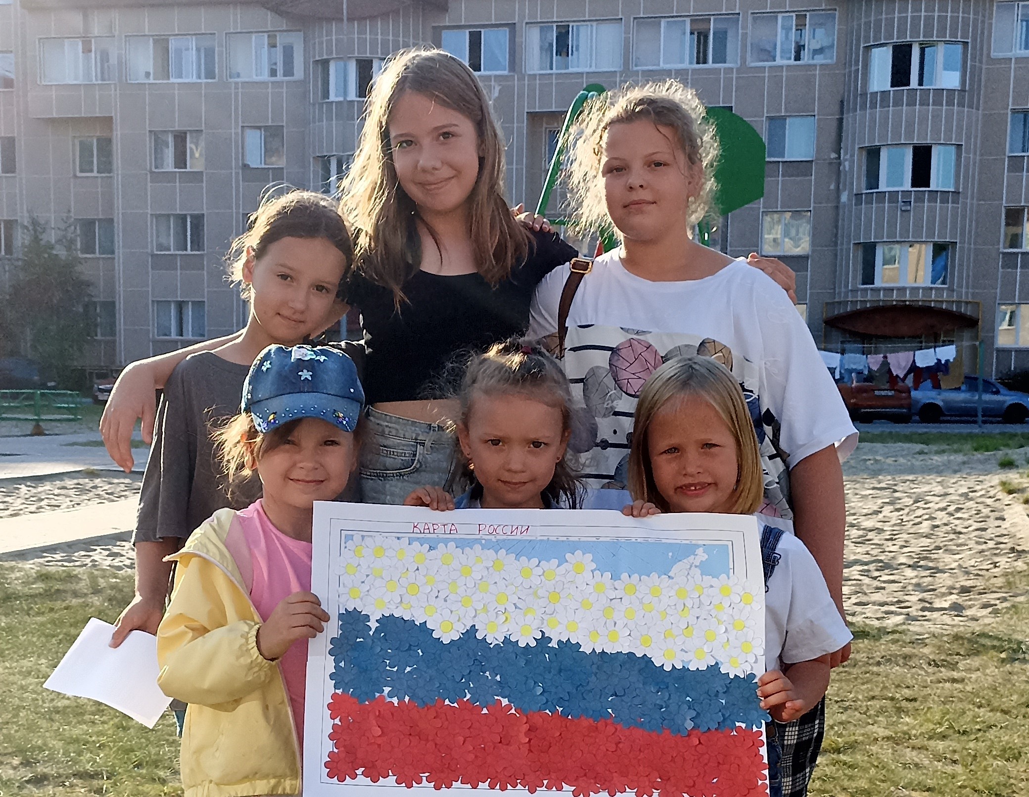 Ребятам рассказали, как на Руси появились стяги, знамена, флаги, как государственным символом Российской Федерации стал сине-бело-красный триколор и что означает эта расцветка. Разноцветными бумажными цветами дети украсили контурную карту России.