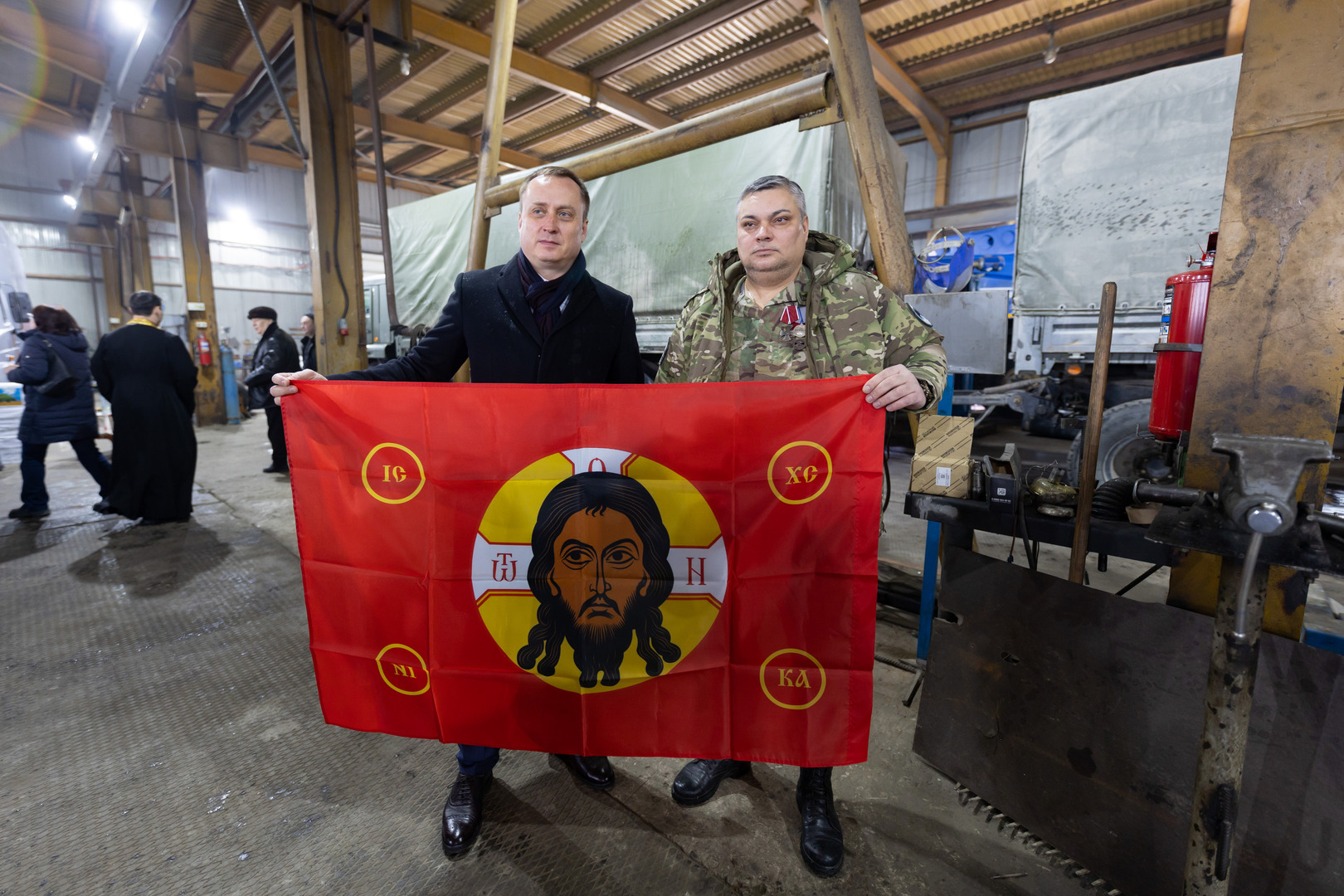 Перед отправкой священнослужитель освятил груз и произнес молитвы за безопасность бойцов и благополучие их семей.