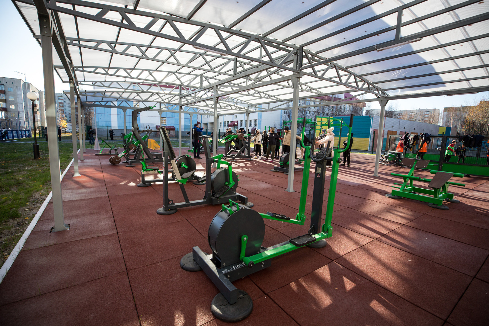 Обустройством площадки занималось МКУ «ДЭАЗиИС». В комплекты поставки входили ограждения, универсальные покрытия, навесы, тренажёры, спортобрудование и даже «умные» столбы с камерами и светильниками, работающими от солнечных батарей. Работа подрядчика включала не только монтаж поставленного оборудования, но и подготовку основания под площадку, её благоустройство, асфальтирование, дополнительное освещение, обеспечение безопасного раздельного доступа для школьников и жителей микрорайона.