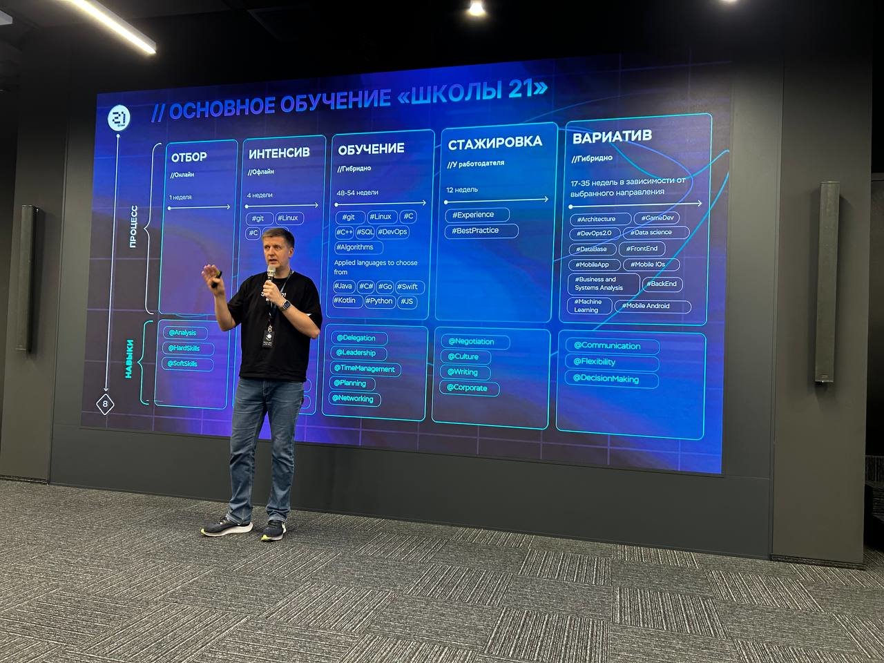 «Профессиональные навыки быстро теряют свою актуальность, поэтому успешным становится не тот, кто много всего выучил, а тот, кто умеет быстро учиться, эффективно приспосабливаться под новые условия и находить нестандартные решения, а ведь именно на эти навыки мы делаем важный акцент в процессе обучения в "Школе 21". Участники "Школы 21" приобретают не только технические знания, но и прокачивают коммуникацию, нестандартное мышление, навыки работы в команде и умение анализировать большие объемы данных. Со временем развиваются и такие востребованные работодателями навыки, как делегирование задач, лидерство, планирование, самопрезентация, управление командой, ответственность».