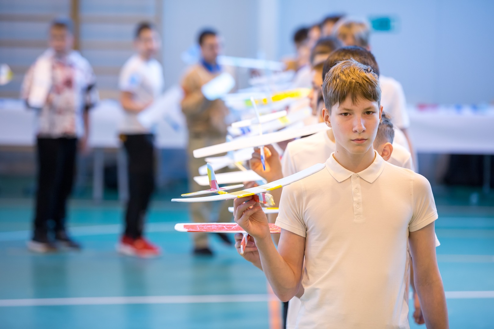 Ученики разных школ города заранее изготовили модели метательного планера и апробировали их в двух дисциплинах: на дальность полёта и на точность приземления. За лучшие показатели боролись 40 ребят из 11-ти школ.