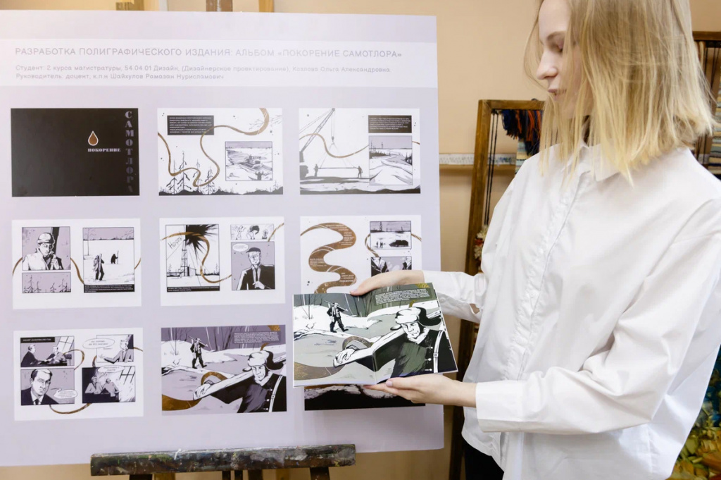 «Покорение Самотлора» – это магистерская выпускная квалификационная работа Ольги. В создании ей помогали наставники, преподаватели факультета искусств и дизайна Марина Новикова и Рамазан Шайхулов.
