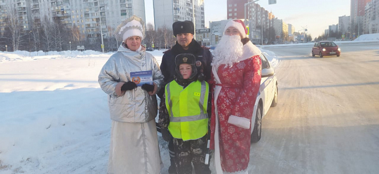 «За время дежурства подросток смог познакомиться с обустройством полицейской машины – пообщаться по громкоговорителю, послушать рацию и включить проблесковые маячки. Кроме того, помогая полицейским, он останавливал машины и вручал памятки по профилактике дорожно-транспортных происшествий, рассказывал водителям о важности соблюдения правил дорожного движения – в общем делал свое маленькое, но очень нужное дело. Контролировали процесс работы Дед Мороз и Снегурочка в погонах», - рассказали в пресс-службе УМВД России по Нижневартовску.