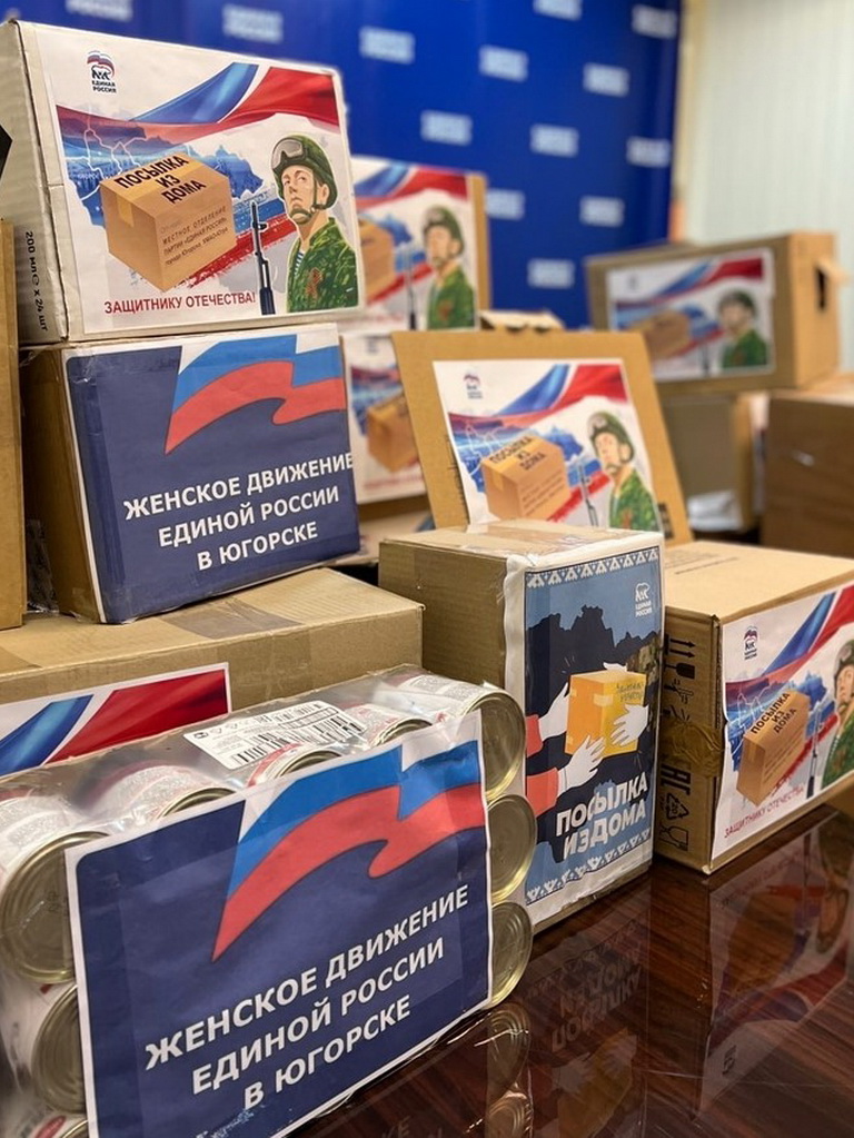 В Югорске представители «Женского движения Единой России» и руководитель фракции «Единая Россия» в Думе города Евгения Комисаренко также собрали «Посылки из дома».