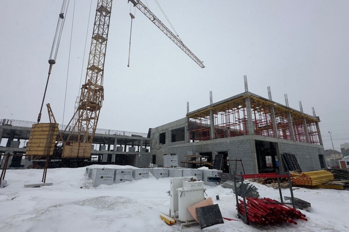 На данный момент готовность объекта составляет 50%, с трудовыми и финансовыми ресурсами проблем нет. Строители закрывают каркас, к концу мая планируют выйти на кровлю, сразу после приступят к внутренней отделке. Работы ведутся согласно графику, но с небольшим отставанием из-за простоя в морозы.
