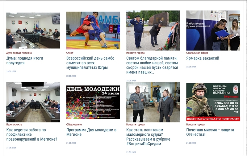 23 июня 2003 года был создан сайт администрации Мегиона, который стал одним из основных телекоммуникационных средств общения с жителями.