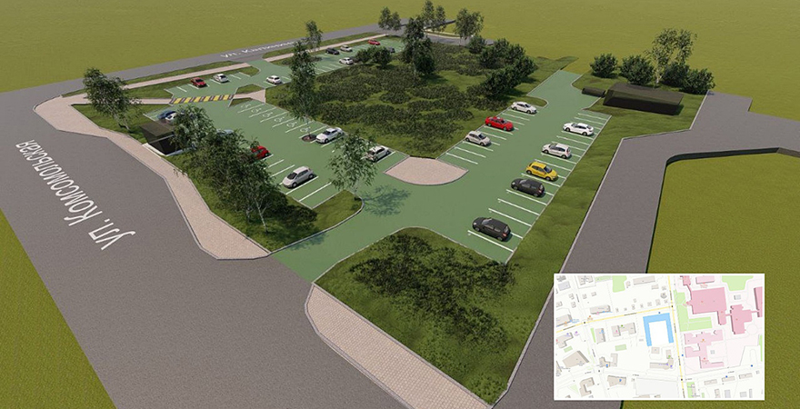 Стоянку на 96 парковочных мест планируется построить на пересечении улиц Комсомольская-Калинина.