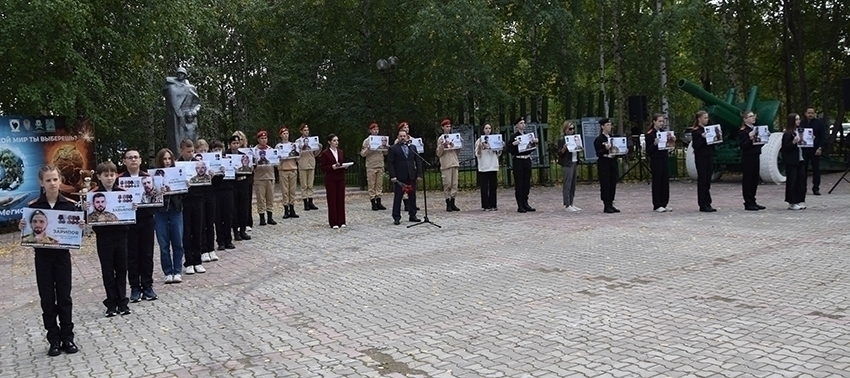 Воспитанники юнармейских отрядов «Ермак» (средняя школа №3) и «Беркут» (средняя школа №2) выстроились в две линии с фотографиями мегионцев, павших в боях за освобождение Донецкой и Луганской народных республик. Эти школьники еще не родились в год, отмеченный роковым бесланским событием, но знают о нем, как и о том, насколько важно быть патриотом, чтобы беречь Родину и нести ответственность за ее судьбу.