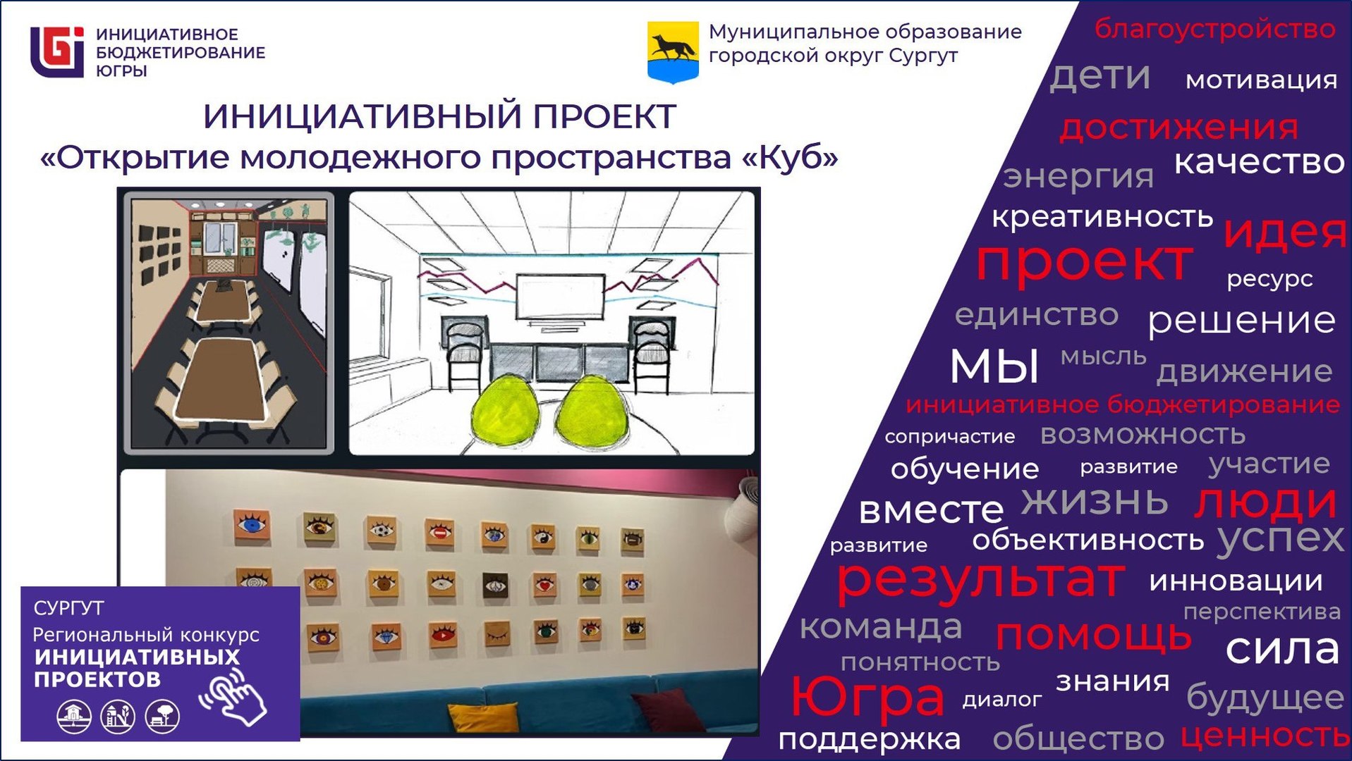 Открытие нового молодёжного пространства станет возможным благодаря практике инициативного бюджетирования. Проект уже поддержали в Администрации города Сургута. Также он участвует в окружном конкурсе инициативных проектов.