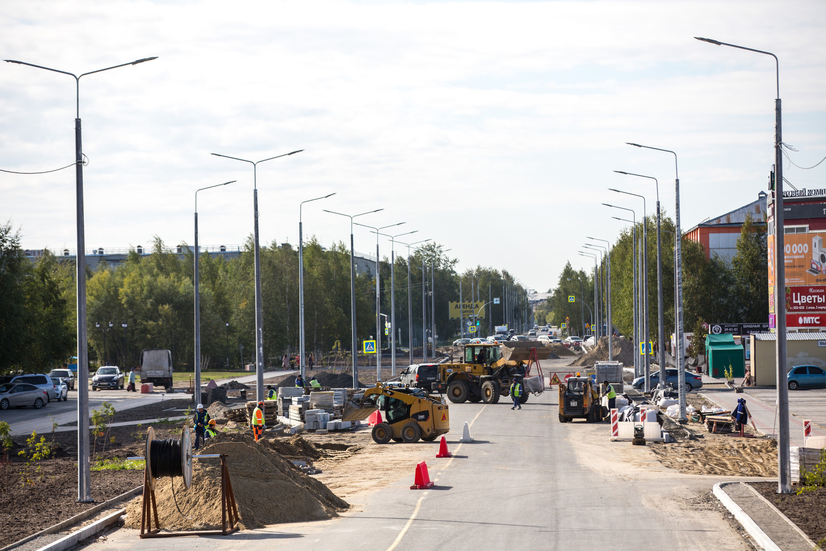 В настоящее время на участке частично перекрыто движение, работают 35 специалистов и 10 единиц техники. Помимо обновления дорожного полотна, здесь обустраивают тротуары, пешеходную и зеленую зоны, а сама дорога становится в два раза шире. Срок окончания всех работ по контракту – 1 ноября 2023 года.