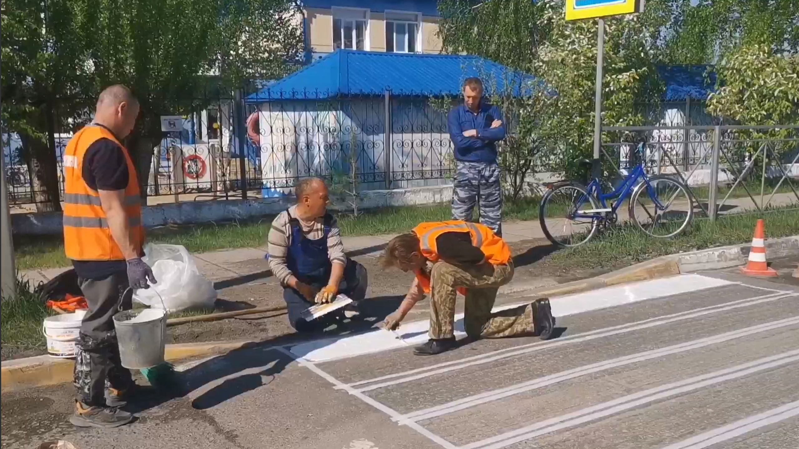 Возле социально-значимых объектов «зебры» наносят специальной краской со светоотражающим эффектом.