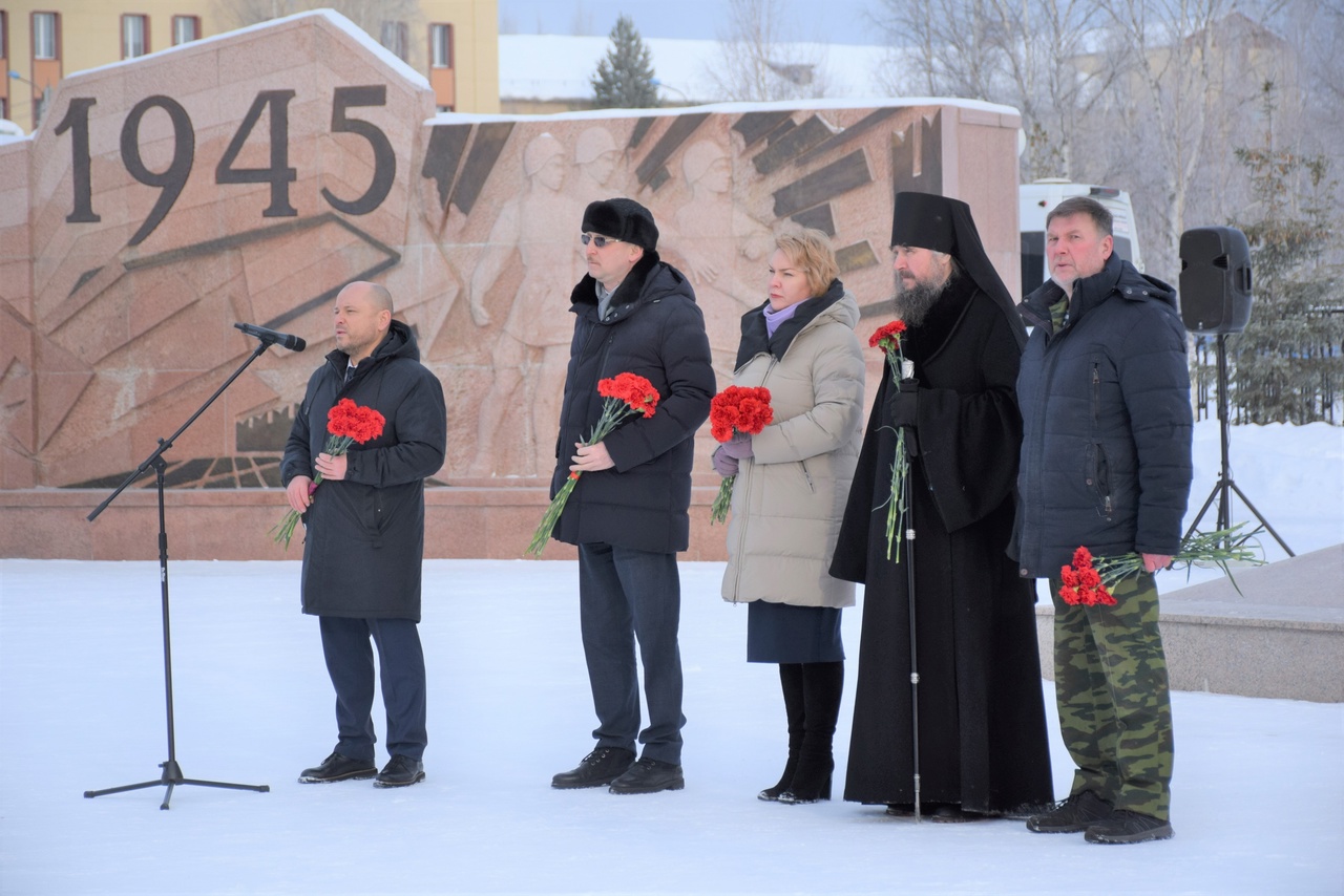 У мемориала «Воинской славы» состоялся митинг, в котором приняли участие представители администрации Югорска, градообразующего предприятия и Югорской епархии, депутаты, члены Молодежной палаты, ветераны, студенты, школьники, волонтёры, участники афганской войны и все неравнодушные жители.
