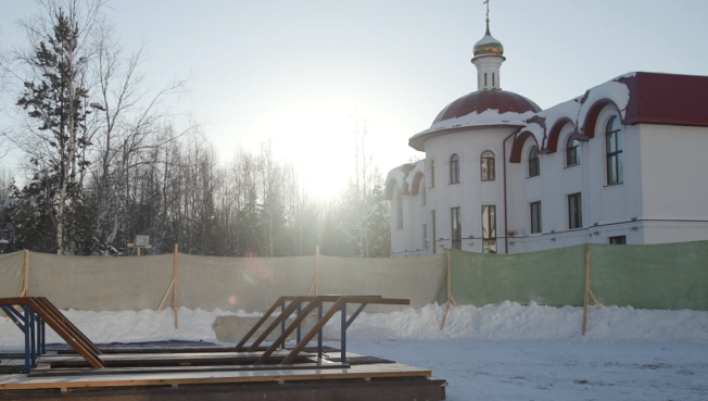 Здесь организовали две мужские и одну женскую купель, раздевалки, биотуалеты