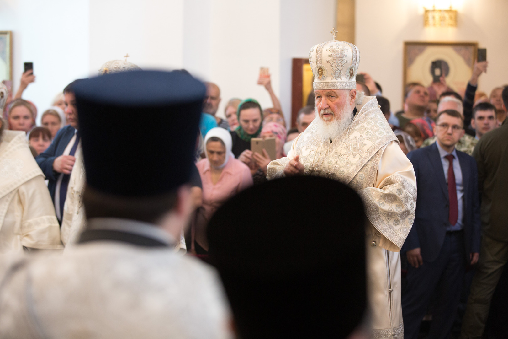 «Очень радуюсь тому, что Господь привел меня на Ханты-Мансийскую землю, в этот вновь построенный храм. Радуюсь, что за то время, пока не посещал этих пределов, многое произошло в духовной и церковной жизни людей, которые здесь живут. Появились божие храмы, обитель. Укрепляется вера православная. И это в тех местах, на которые не очень обращали внимания в прошлом, потому что все это воспринималось как окраина, богатая ресурсами, куда приезжают люди зарабатывать деньги, важной с экономической точки зрения, но где-то там далеко. А сейчас благодаря труду того народа, который здесь живет, огромным достижениям в экономике, социальной жизни, очень большим положительным изменениям в жизни церковной, сие место уже никто не посмеет назвать окраиной. Потому что здесь, как и в столице, есть все необходимое для жизни людей и, в первую очередь, для духовной. Изменился состав верующих. Вижу много людей и молодого, и среднего, и пожилого возраста. Вижу народ, который в молитве объединяется. Это пламенеющий веры огонь, который восходит к небесам и привлекает к тем, кто хранит веру, Великую Божественную благодать», – сказал Святейший Патриарх Московский и всея Руси Кирилл .