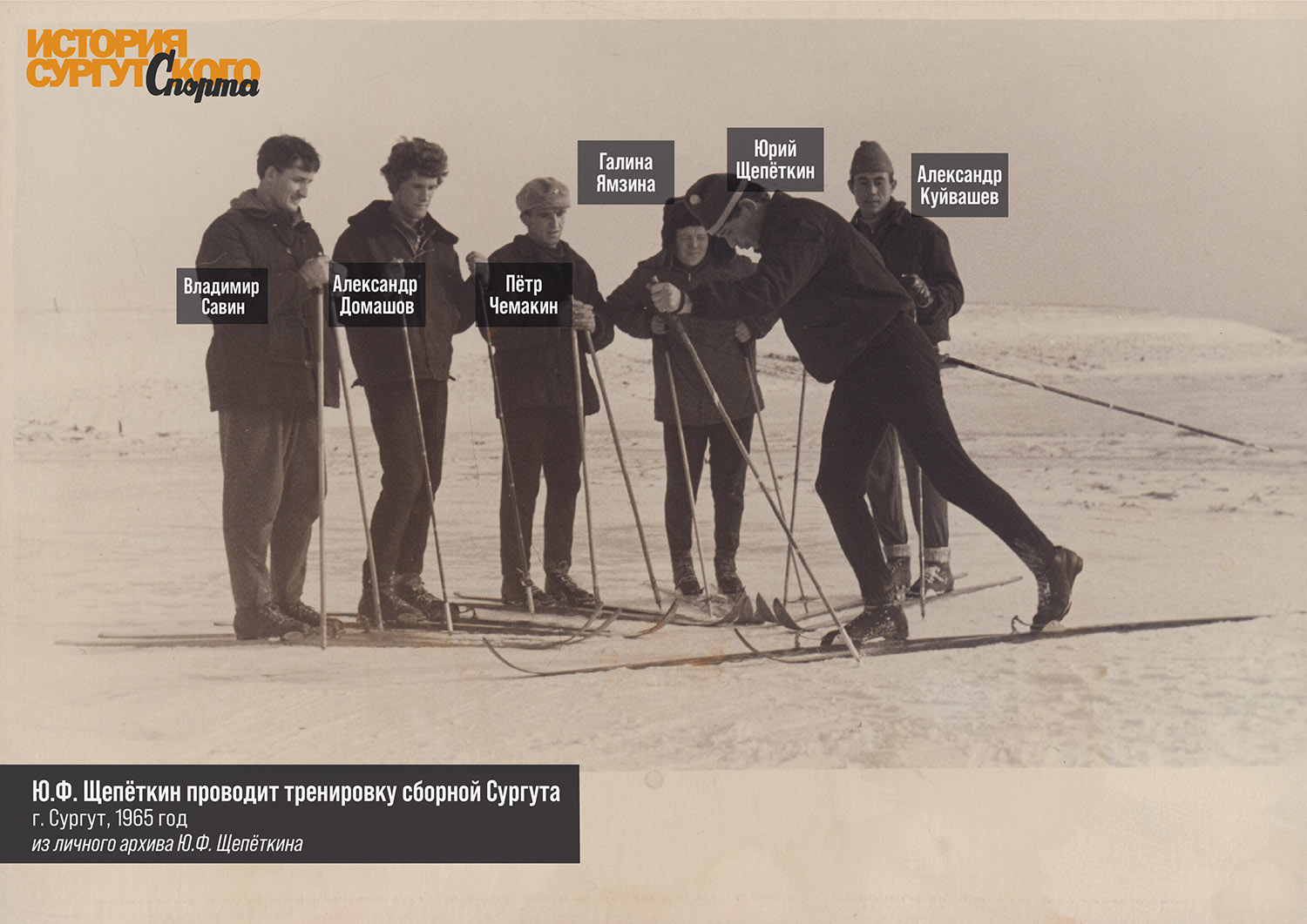 В середине ХХ века вместе с Ю.Ф. Щепёткиным свой вклад в развитие лыжного спорта в Сургуте внесли работники рыбокомбината Тамара Кошкарова, Анатолий Куйвашев и участник нефтеразведочной экспедиции Владимир Проводников. В 1964 году на Х традиционной гонке сильнейших лыжников Сибири, которая проходила в городе Тобольске, Тамара Кошкарова и Юрий Щепёткин вошли в 20-ку лучших спортсменов.
