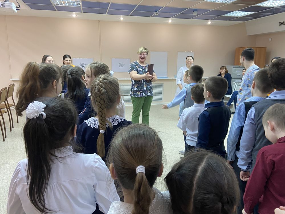 Двадцать мальчишек и девчонок увлечённо выполняли задания конкурсов. Конкурс прошёл в оживлённой дружественной атмосфере. Конечно же, проигравших не было. В конце мероприятия учащимся были вручены подарки – зубные щётки с памятками и талисман в виде серебряного зубика.