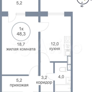 - Общая площадь: 48.3 м²