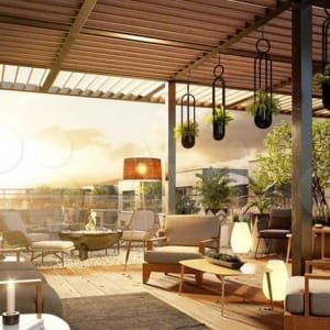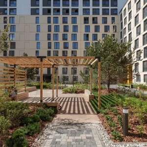 В проекте предусмотрены двухуровневые квартиры, которые разделены на приватную и гостевую зоны. На первом этаже расположена прихожая, кухня-гостиная, гостевая спальня и санузел. На втором спроектированы мастер-спальни, детские комнаты, ванные и ниши под хранение. Площади таких квартир позволили архитекторам дополнить жильё дополнительными функциями: вместительными гардеробными и отдельными душевыми