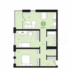 - Общая площадь: 70.9 м²